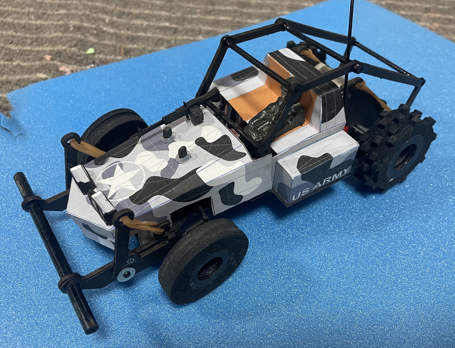 シャーシはレーザー加工機でジュラコン樹脂を切り出して作りました、ボディーは3Dプリンターで型を作ってバキュームフォームしました